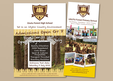 Usutu Forest Primary School started the re-branding process in 2016 when they announced the opening of the High School. In conjunction with the building of the High School they decided to rebrand the school as Usutu Forest School, with this was a revamp of the old Usutu Emblem. Branding and promotion of the school is an ongoing process. www.usutuschool.ac.sz